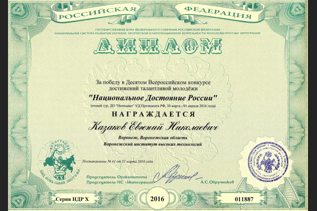 Студент ВИВТ награжден серебряным знаком отличия «Национальное достояние России».