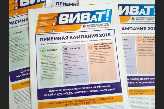 Вышел специальный выпуск газеты «ВИВаТ!», посвященный вопросам приемной кампании ВИВТ в 2016 году.